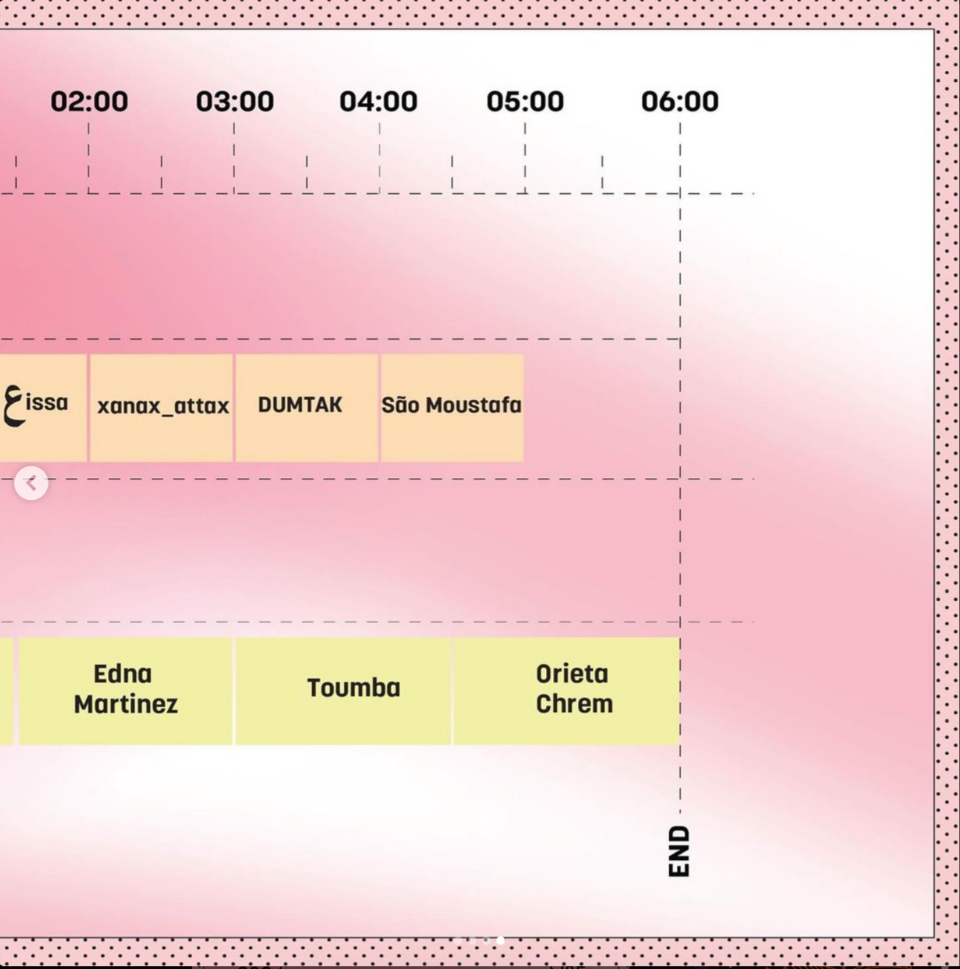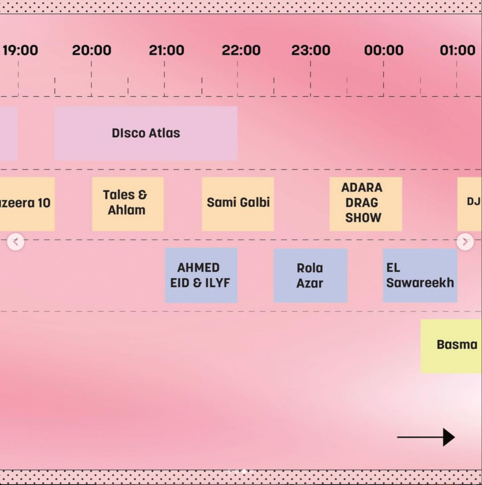 Für das ganztägige Programm hat sich das Festival mit den lokalen Kollektiven Adira Party und Latin Arab zusammengeschlossen. Das Ergebnis ist eine sorgfältig kuratierte Mischung aus Live-Musik, Drag-Shows und DJ-Sets, die Einblicke in die Pop-, Queer- und alternative Musik- und Kunstszene der SWANA-Region bietet.