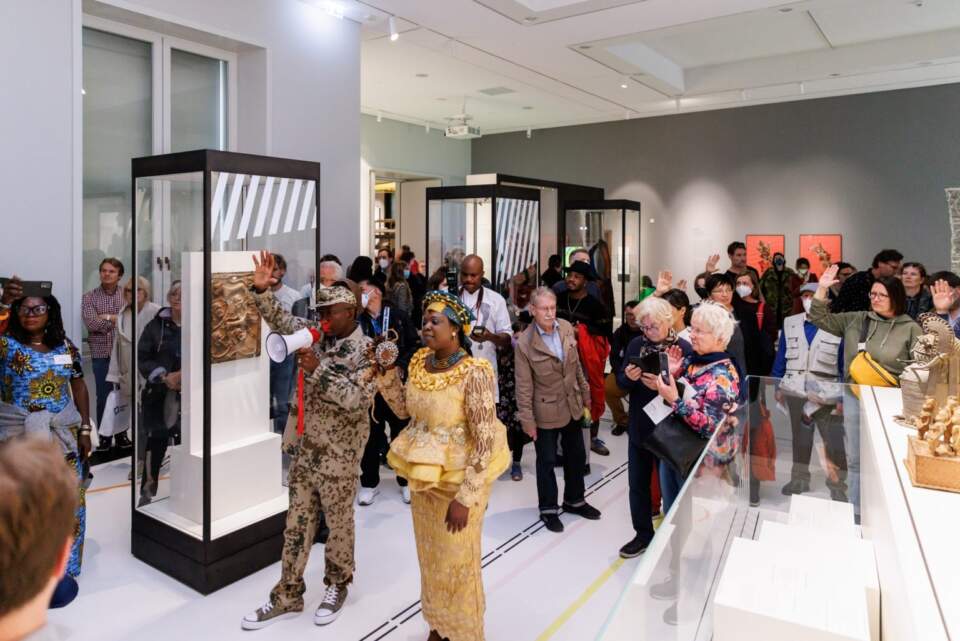 Der Künstler David Dibiah hinterfragt in dieser Performance die Sammlungen Afrikas und ihre Präsentation. Was liegt in öffentlichen Räumen und Vitrinen wie diesen? Welche Wahrheiten müssen aufgedeckt werden? Welche Lügen existieren bis heute? In alternierenden Rhythmen bestehend aus Rap, Gebeten, Gedenkausrufen, Melodien und poetischen Deklamationen entsteht gemeinsam mit dem Publikum ein Protestsound, der Deutungshoheiten nachgeht und fordert: Kein Objekt ohne Erlaubnis!