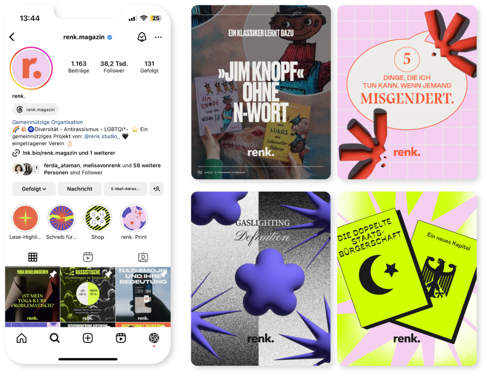 Digitale Formate, darunter das renk.-Magazin und gezielte Social-Media-Kampagnen, die unsere Botschaft weit über Berlin hinaus verbreiten und für gesellschaftlich relevante Themen sensibilisieren.